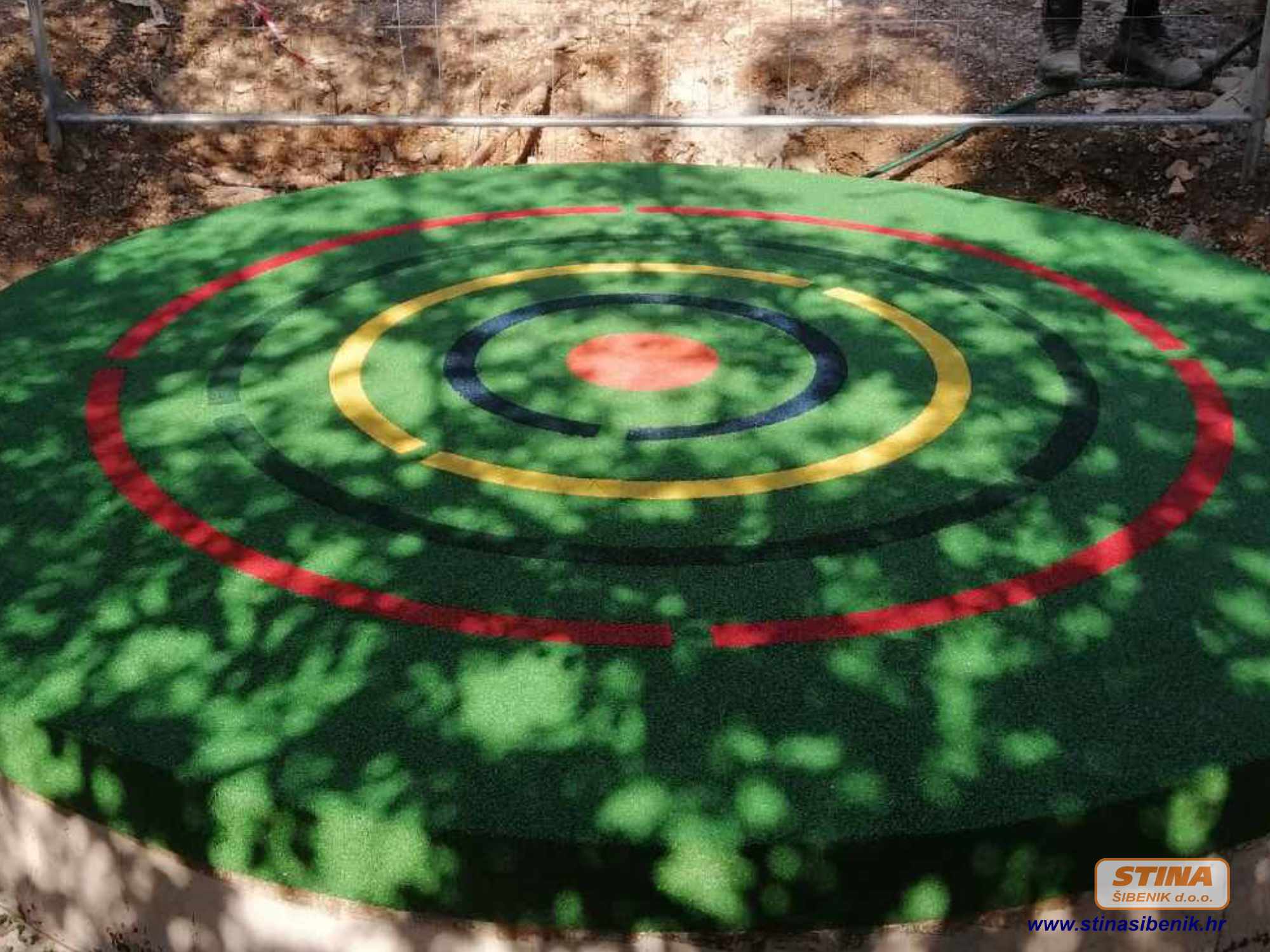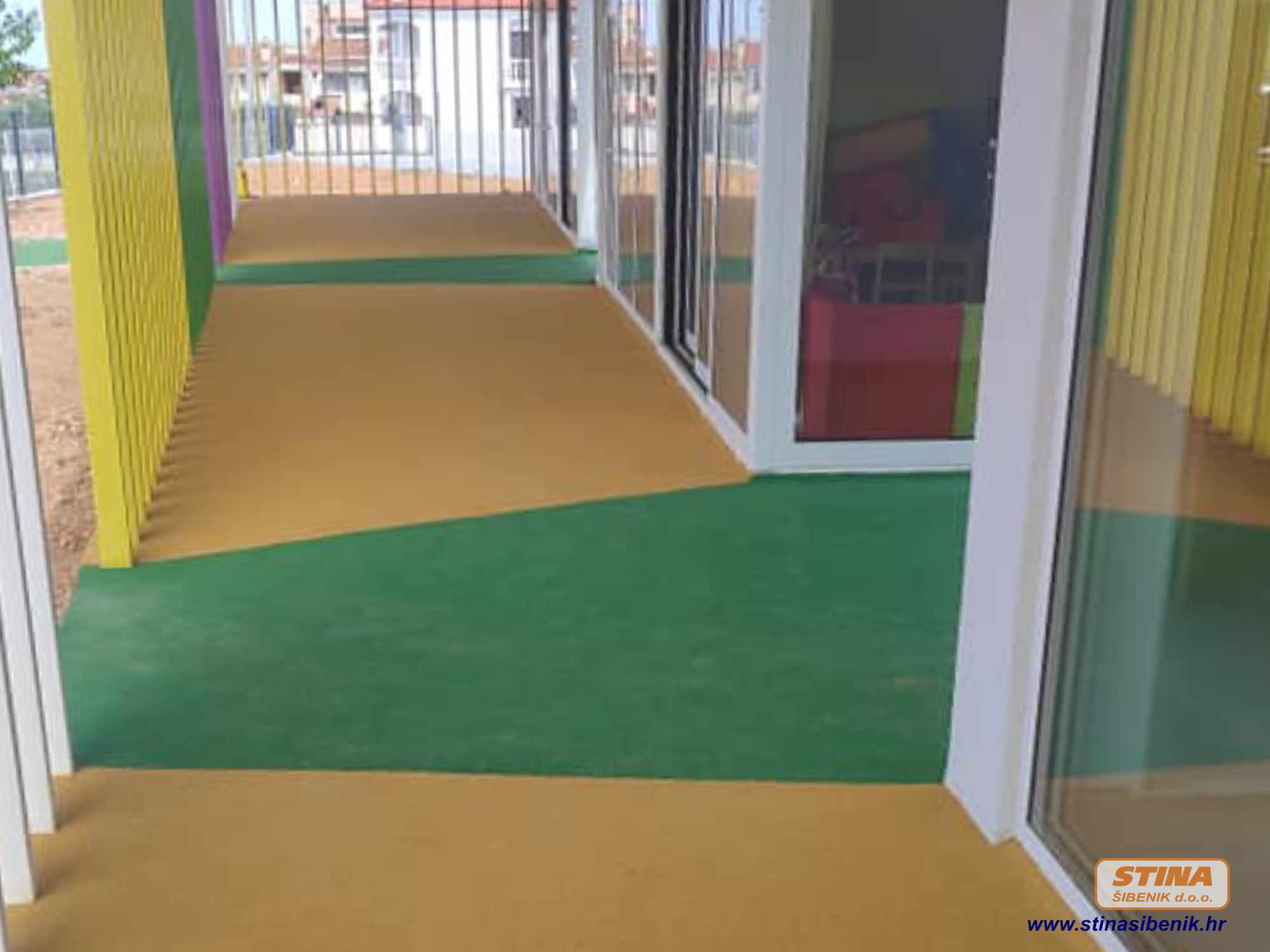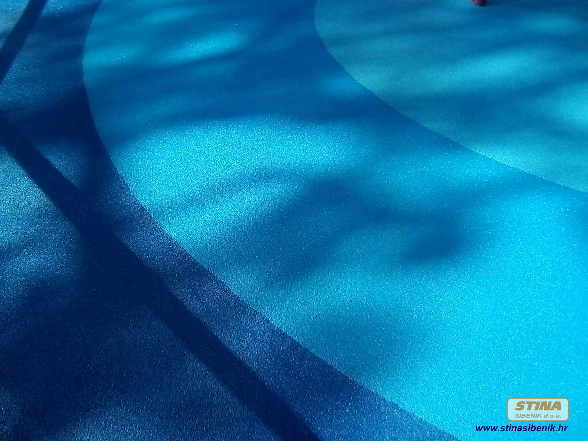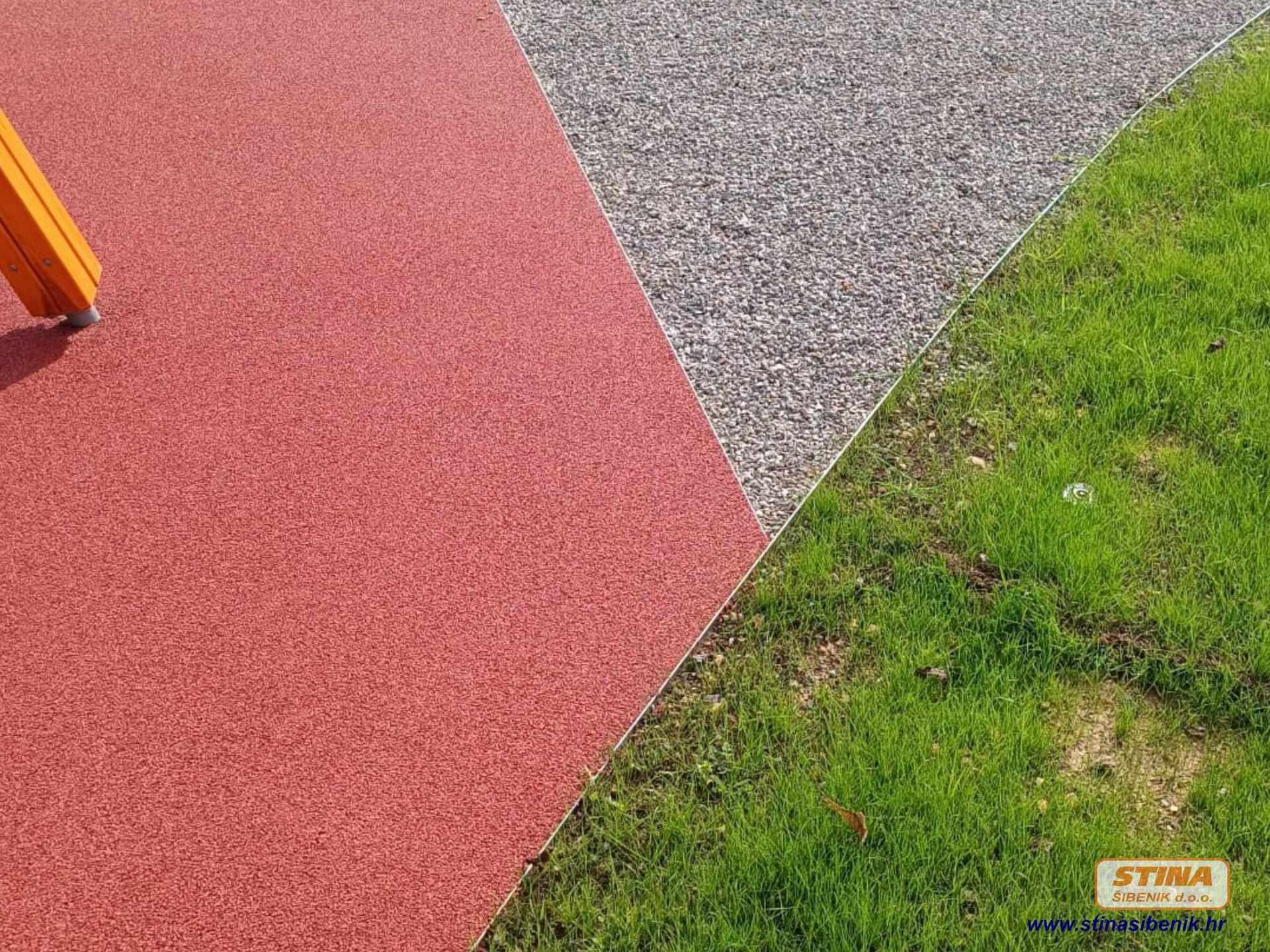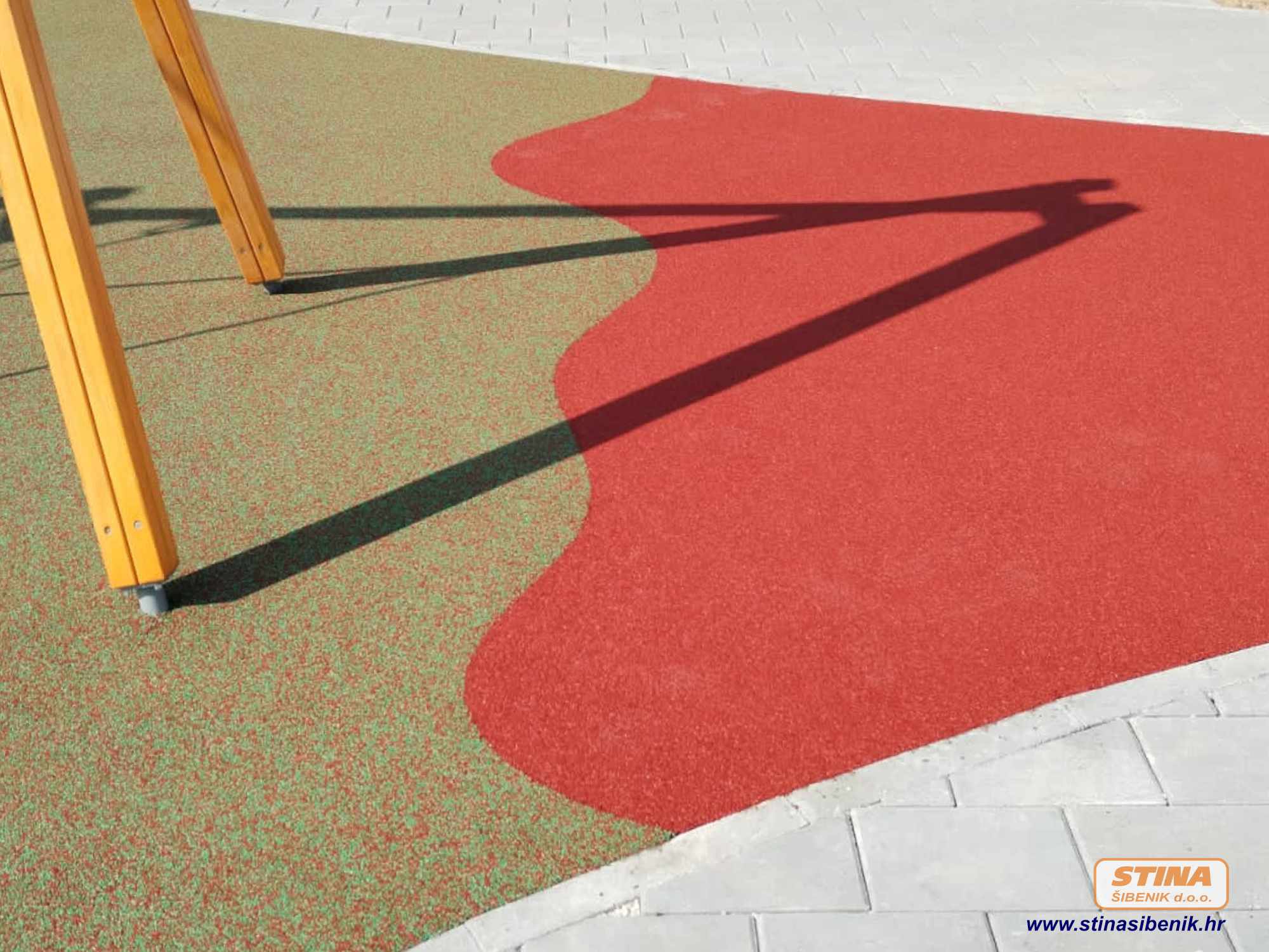 Stina Šibenik izvodi lijevane podloge za višenamjenske površine, koje mogu biti podloge za igrališta, šetnice ili staze za jogging. Ovaj tip podloge je vodopropustan, što omogučava prirodan protok oborinskim vodama i brzo se suši.
