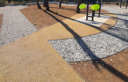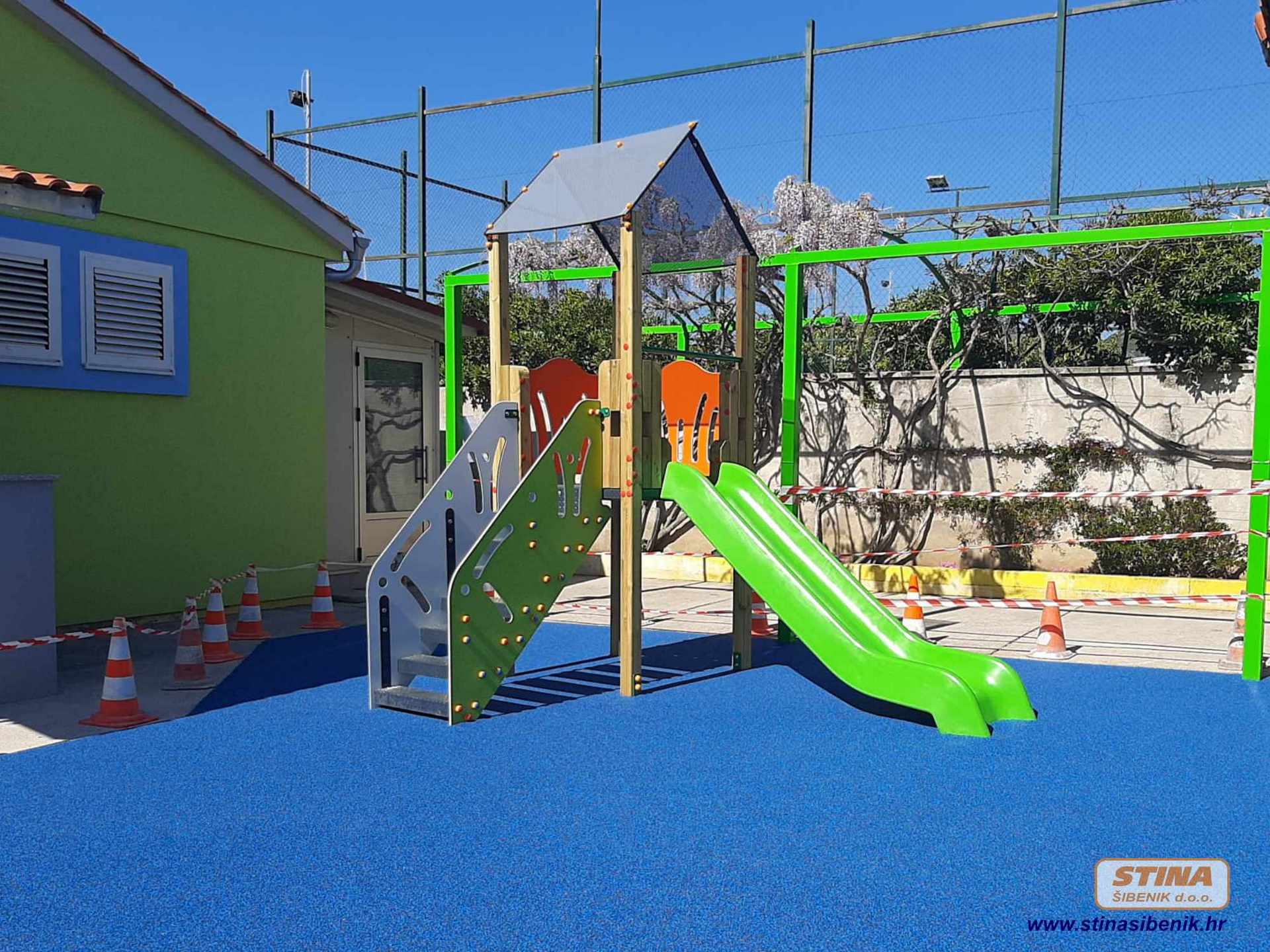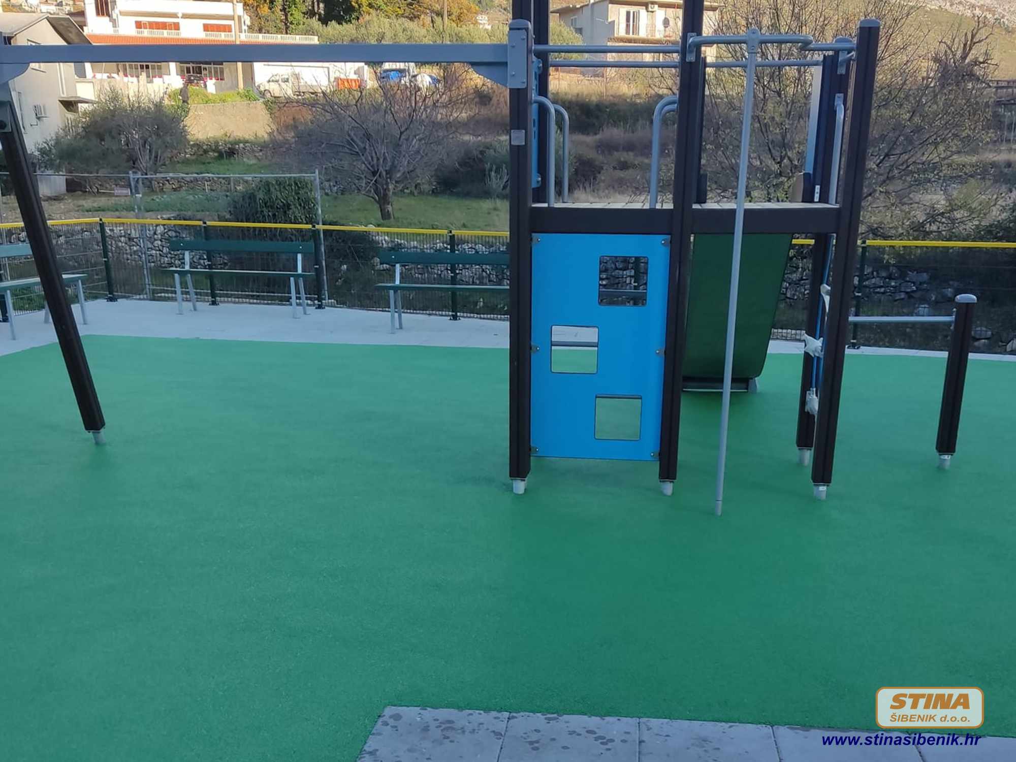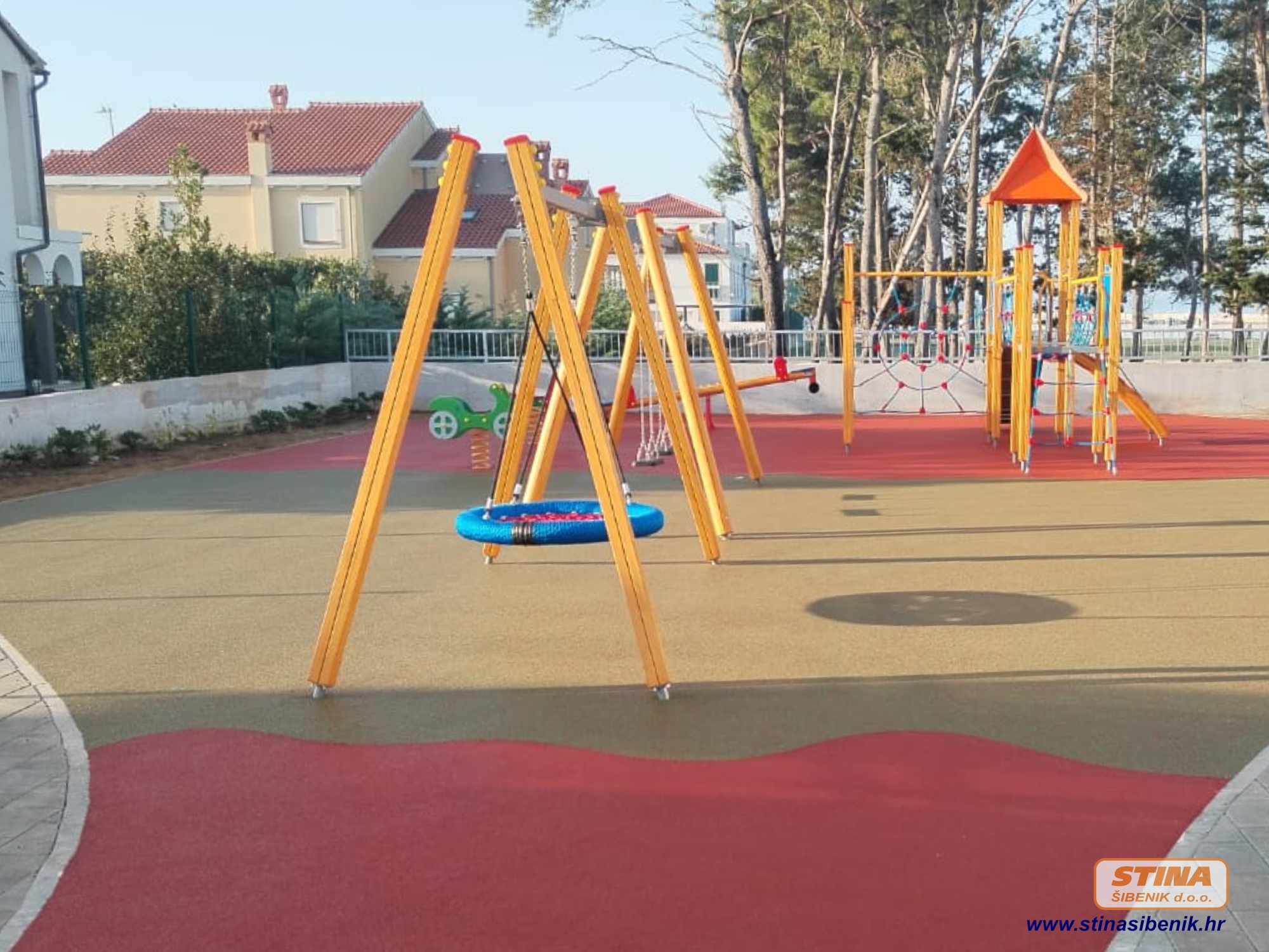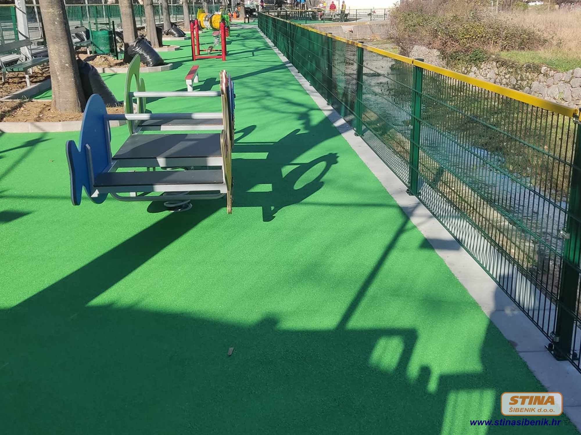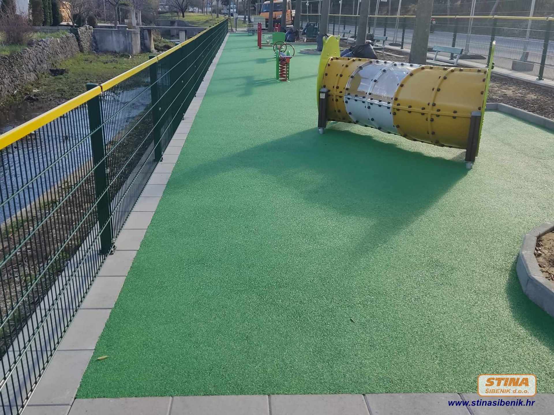 Stina Šibenik izvodi lijevane podloge za višenamjenske površine, koje mogu biti podloge za igrališta, šetnice ili staze za jogging. Ovaj tip podloge je vodopropustan, što omogučava prirodan protok oborinskim vodama i brzo se suši.